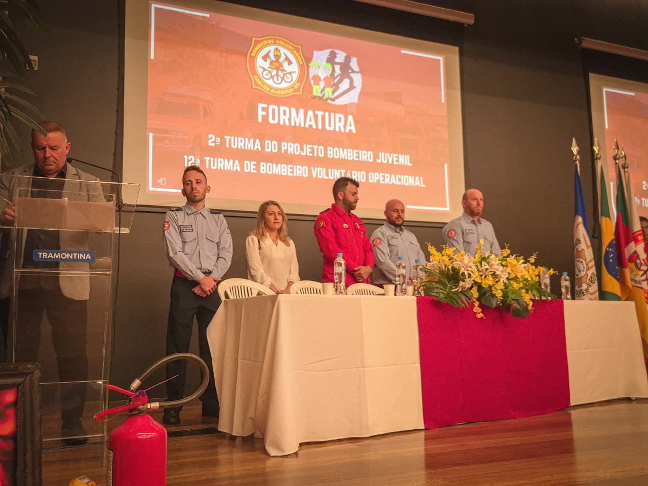 Os Bombeiros Voluntários de Carlos Barbosa realizaram, na noite desta quarta-feira, 04 de dezembro, a solenidade de formação da 2ª Turma do Projeto Bombeiro Juvenil e da 12ª Turma de Bombeiro Voluntário Operacional.