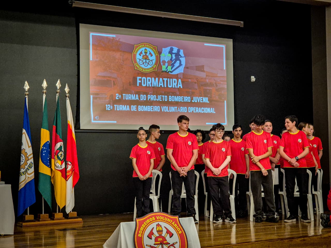 Os Bombeiros Voluntários de Carlos Barbosa realizaram, na noite desta quarta-feira, 04 de dezembro, a solenidade de formação da 2ª Turma do Projeto Bombeiro Juvenil e da 12ª Turma de Bombeiro Voluntário Operacional.